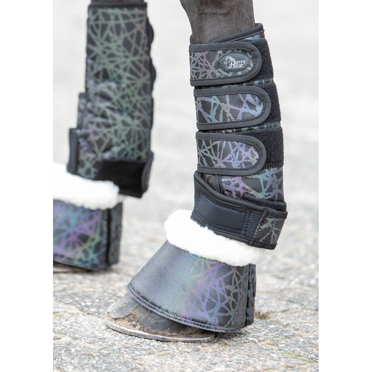 - de springschoenen passen perfect bij de beenbeschermers Harry’s Horse Mystique