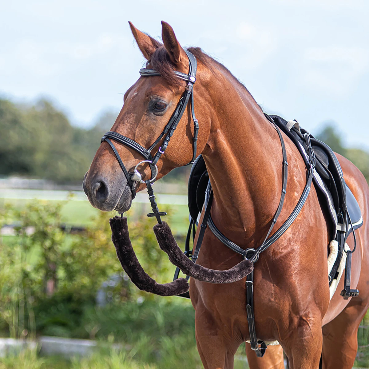 - ter bescherming van de hals van het paard voor beschadigingen door teugels en/of leidsels