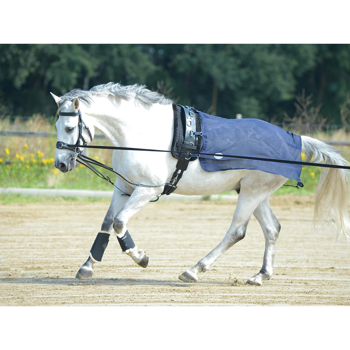 - vijf klittenbandsluitingen voor snelle en eenvoudige bevestiging aan de longeersingel