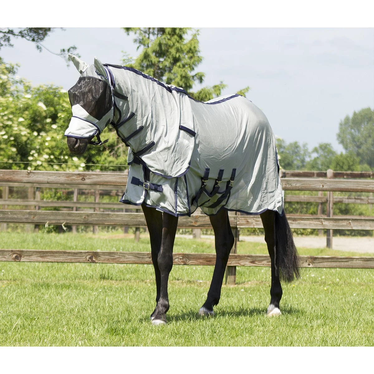 Vliegendeken QHP Met Hals en Masker Donkergrijs